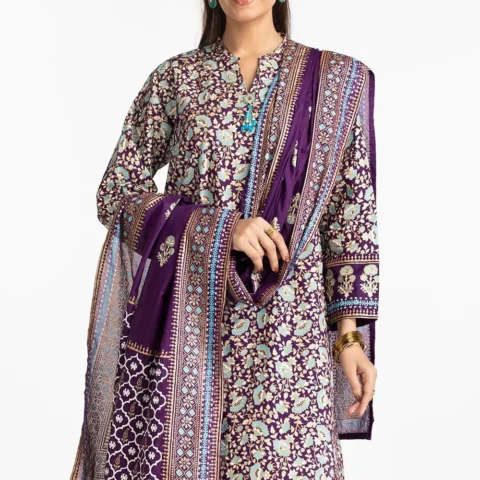 3 Piece Lawn Gold And Lacquer Printed Suit IUSTKSD-288