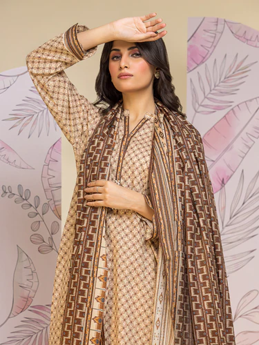 Unstitched Beige Printed Lawn 3 Piece – EWU24A1-26425-3P